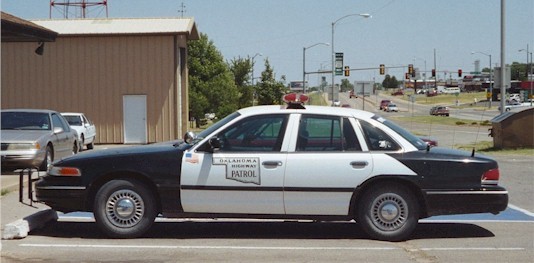 Highway Patrol car at Clinton, alongside Route 66. |
