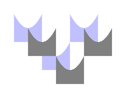 Here is an example produced using the Paint program, here presented as a .gif file. For this design, repeating of the motif and offsetting are used. Rotation of the motif is not used for this design.