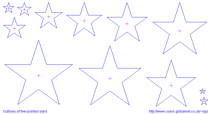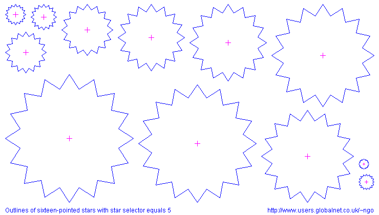 Sixteen-pointed stars in various sizes, star selector equals 5.