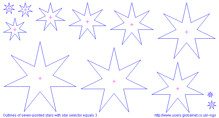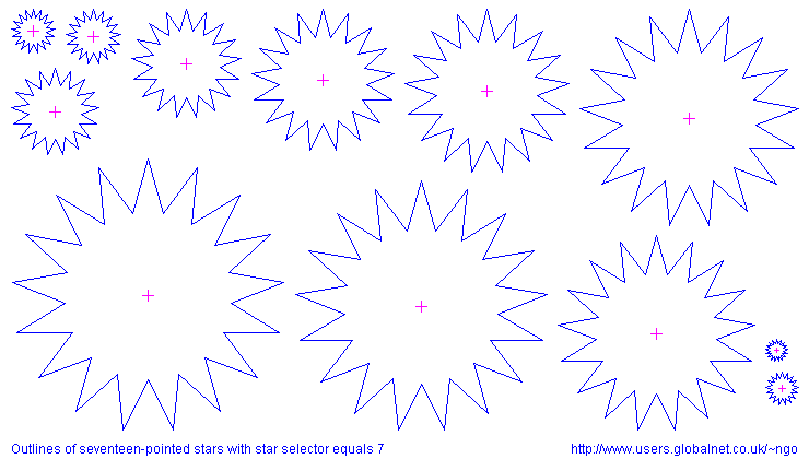 Seventeen-pointed stars in various sizes, star selector equals 7.