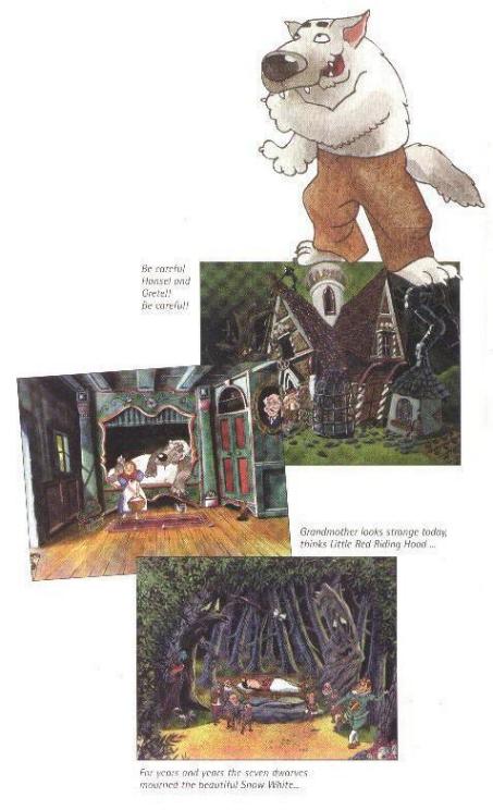 seven dwarves, Little Red Riding Hood meets the big bad wolf and