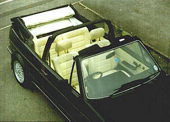 Full cream leather interior. Not quite as good as it should have been. The back seat is great the front seats are ok but the doors are a bit crap. Should really have got the bloke who did the roof to do the seats as the mohair roof is perfect. The inner roof panel still in white will be replaced as soon as funds permit but with the hood boot on it doesn't show any way. Front electric windows have been fitted to the front and the rocker switchs [from a scirroco storm] have been cunningly cut into the doors rests. This is however very very tedious and NOT recommended. Large 6x9" speakers have been installed in the front door. I had to remove the door pocket and speaker holder. Make up a MDF tear shape to screw the speaker to and mould with filler to a smooth shape. Again very tedious. |