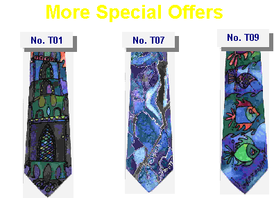 There is always a wide selection of scarves available for sale. All scarves are pure silk, hand painted and individually numbered. Long scarves (like these) usually measure 100cms by 30cms. There is also a range of large squares measuring 90cms by 90cms and a range of smaller pocket size squares 30cms by 30cms.