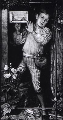 Now I happen to have a copy of the RHS Annual Report for 1907 and Case No. 35674 is reported as follows: "On 22nd September 1907, a man in some way fell into the river Aare at Thonne, Switzerland. Major H.C. Holman, Indian Army, who was present, at once jumped in and succeeded in saving him. Awarded the Bronze Medal". The next task was an easy one (or so I thought) and that was to scrutinise all the books available through Exeter Library to find the illustration I last saw at Richmond. There were too many. The logistics of the problem were too great, even Exeter Librarians must have their limits. As a consolation I found many illustrations of Hilary Lushington by his father but all as a cherubic child and not one of the proud wearer of the Bronze Royal Humane Society Medal. The picture below ‘Master Hilary – The Tracer’ was exhibited at the Grosvenor Gallery, 1887, with the following quotation in the catalogue, "Be sure before painting to make a correct outline" (taken from the Walker Art Gallery catalogue, 1969).