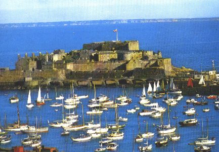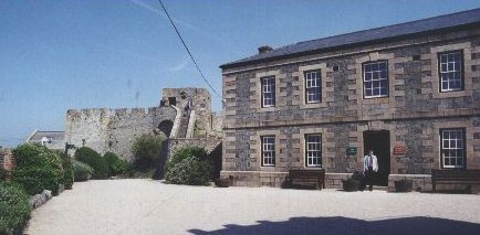 Castle Cornet stands over guard the entrance to the harbour and the town The old Hospital building is in the centre of the picture
