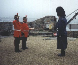 Gun crew inspection Shown below you will find some more pictures illustrating this brief account and if you should find yourself in Guernsey between now and the end of October, be sure to visit Castle Cornet where the Thin Red Line uniform collection is just one of the many interesting collections and attractions on view. Castle Cornet Location: Castle Emplacement, St.Peter Port, Guernsey Telephone (01481) 721657