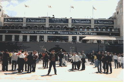 The day began bright and early for me, the alarm went off at 7.15, but I hadn't slept much thanks to the excitement of the day ahead, I was like a kid waiting for Santa Claus. A quick breakfast (two ham rolls) which was to prove the only food consumed all day!! and then to the hole in the wall for cash for the day. Petrol next. Then, scarves flying from the windows I left Nottingham about eight. Tuned to Radio Northampton just south of Leicester to hear of any news and heard Ian Atkins being interviewed he was surrounded by Japanese tourists apparently (presumably all looking for tickets) lost the RN signal just south of Toddington. I had arranged to stay with a cousin in Enfield and left the car there before getting the tube to Central London, a quick stop at Sportspages then to Crawford Street near Baker Street to the Turners Arms, a Shepherd Neame pub, a quick pint there before getting to the meeting pub for the allotted time. Arrived at the Beehive - no-one else there save a couple of locals, then a group of lads came in, friends of Emily Lomax's, then Gareth Kingston arrived and slowly but surely the pub filled with more Cobblers fans including Ian who had flown in from Saudi for the occasion! Several beers and photos before heading to Marylebone for the overland route to Wembley Stadium Station, arrived at the Swansea end of the ground, with Jacks all around, but fortunately the atmosphere was ok. Then to the front of the Stadium, to see the place awash in a sea of claret, time for a quick photo I think.