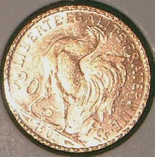 | 20 Francs | 1904 | .1867oz pure gold Rooster coin | Choice AU |